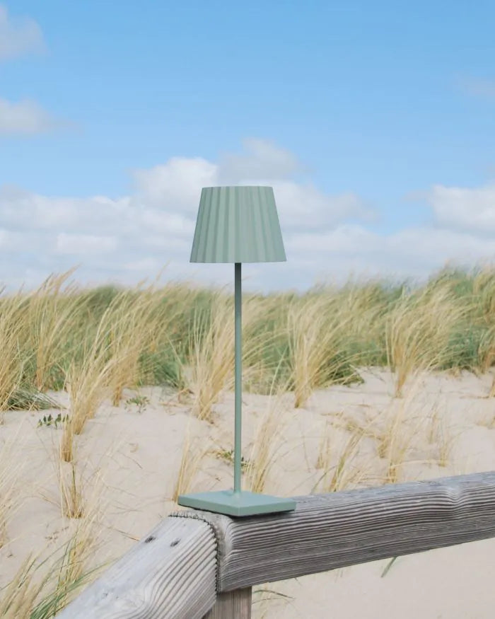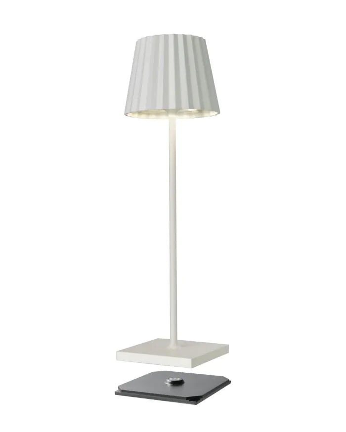 Dimmbare Beleuchtung für Innen- und Außenbereiche, mit zwei wählbaren Lichtfarben und integrierter Ladestation.