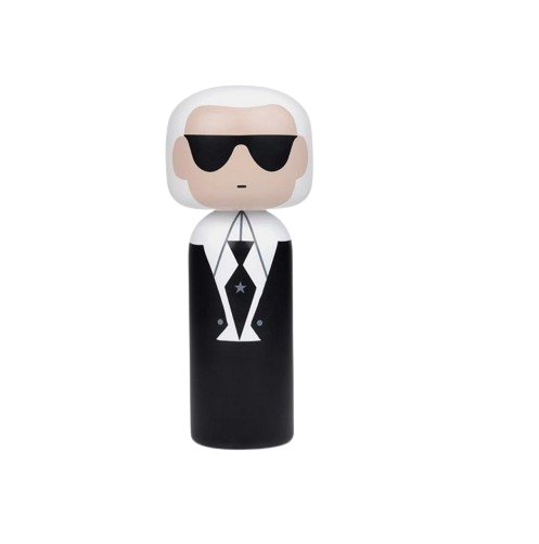 Dieses von Karl inspirierte Kokeshi ist eine stilvolle und raffinierte Holzpuppe, die eine Hommage an den kultigen Modedesigner und Kreativdirektor darstellt und ein elegantes und schickes Design mit seinem charakteristischen hochgeschlossenen Hemd, der schwarzen Krawatte und der Sonnenbrille aufweist, alles inspiriert von seinem unverwechselbaren Sinn für Mode. Das Kokeshi ist eine spielerische Darstellung von Karls ikonischem Stil und seiner Kreativität und fängt die Essenz seines innovativen und visionären Ansatzes in der Mode ein.