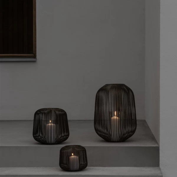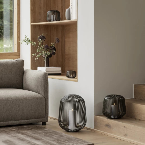 Stimmungsvolle Eleganz: Die Laterne LITO erzeugt nicht nur bezaubernde Lichteffekte, sondern schafft auch eine warme Atmosphäre. Die feinen, pulverbeschichteten Stahlstreben verleihen ihr eine stilvolle Leichtigkeit, kombiniert mit einem Hauch von rustikalem Charme. LITO ist in verschiedenen Größen erhältlich, die sich harmonisch miteinander kombinieren lassen. Nur für den Innenbereich geeignet.