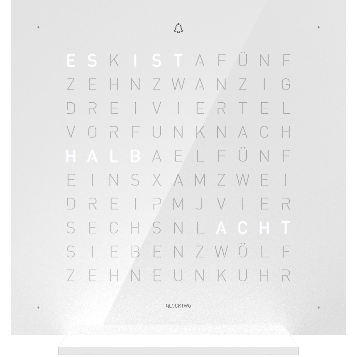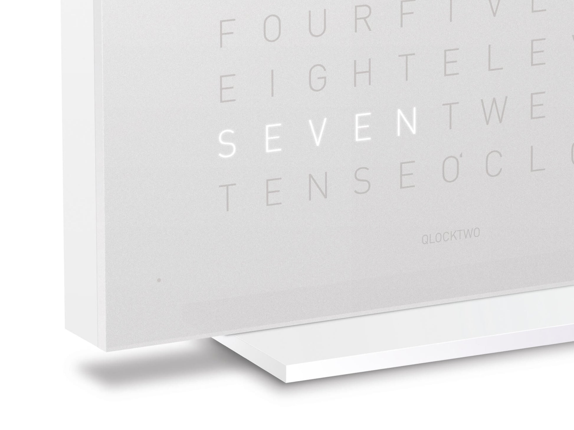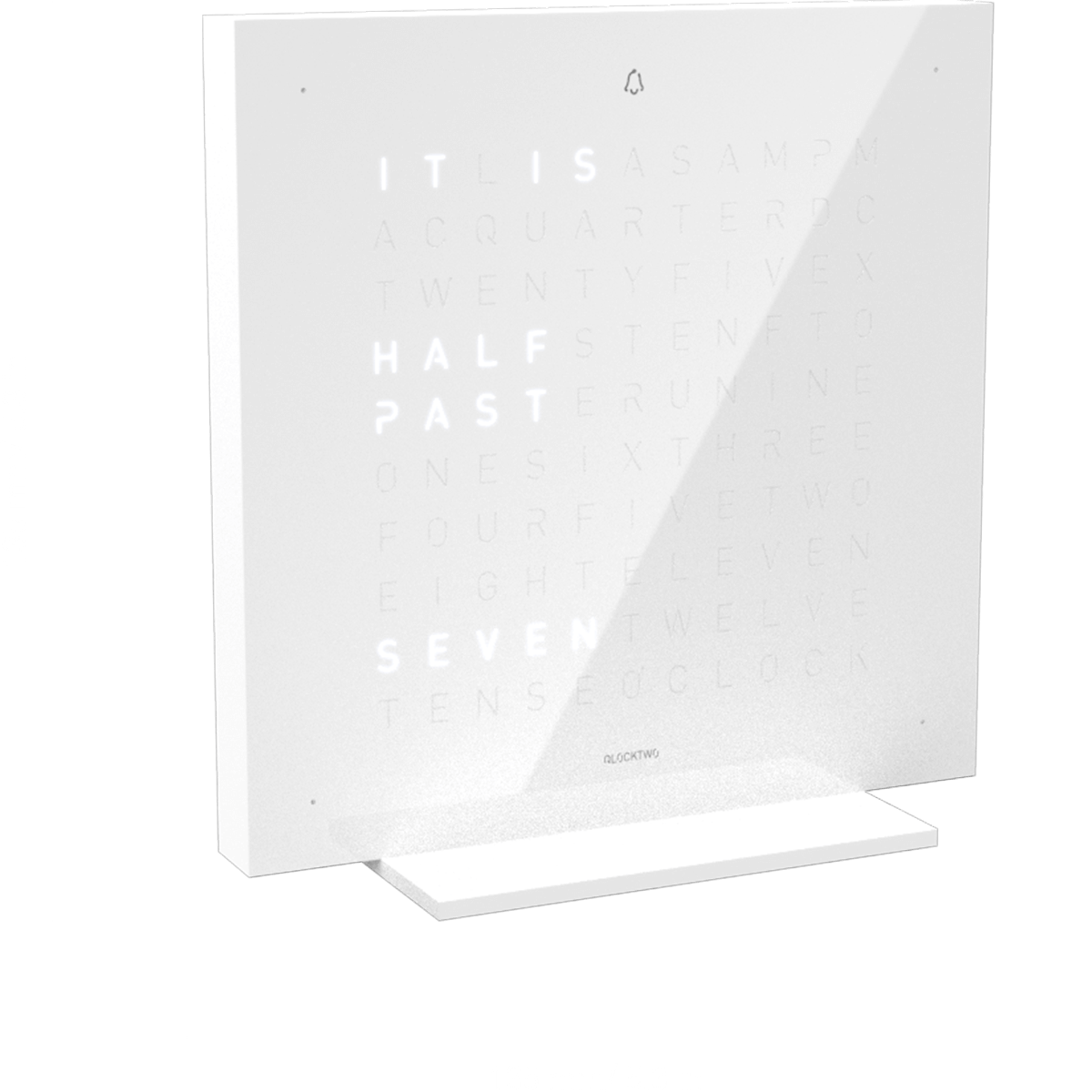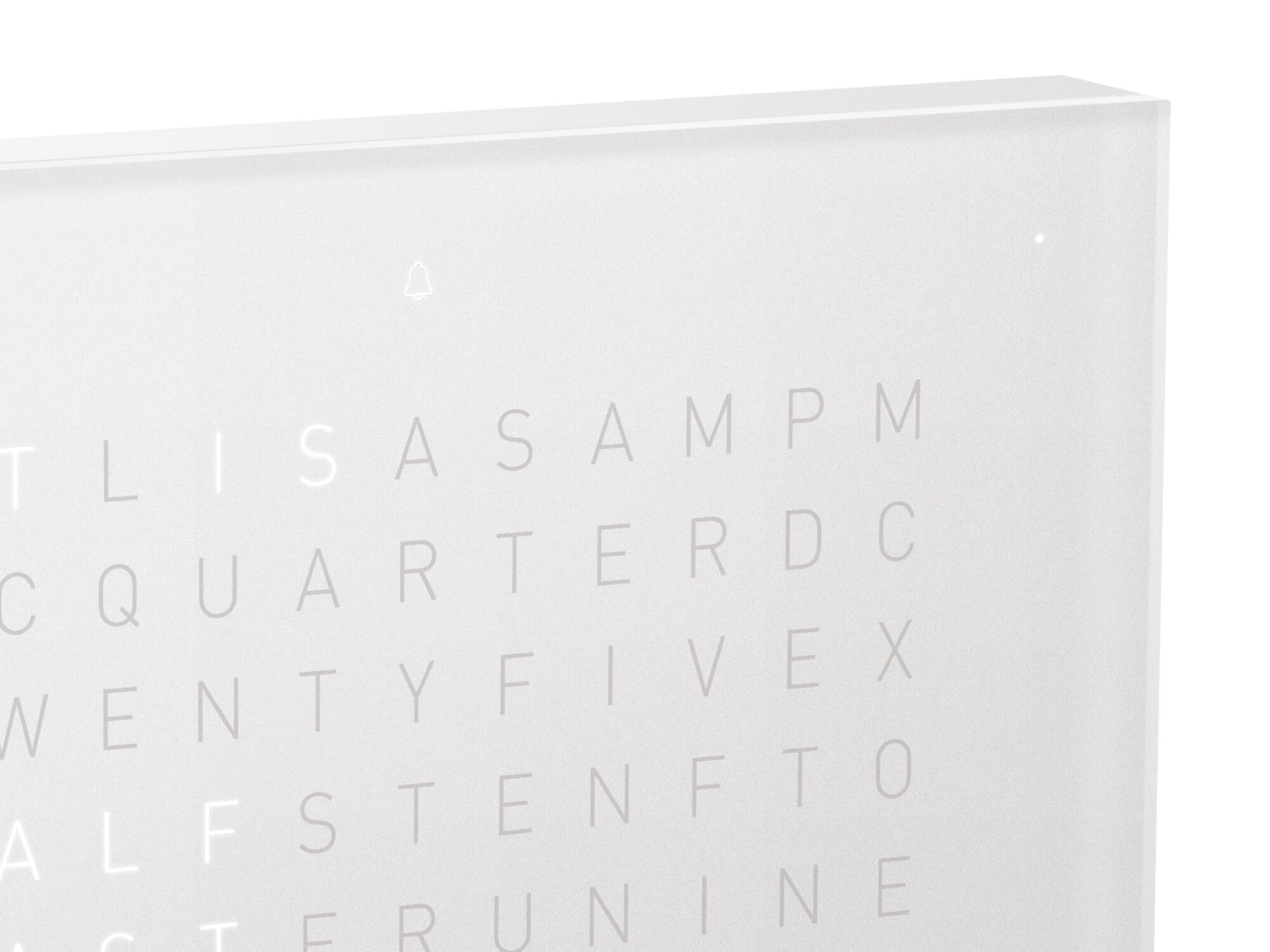 Mit einem weißen Korpus und einem individuell anpassbaren Acryl-Frontcover passt sich die Uhr jeder Umgebung an. Die Fronten, in einem aufwendigen Siebdruckverfahren gefertigt, lassen den weißen Korpus durch ihre leuchtenden Farben in einem neuen Licht erstrahlen. Verfügbar in 6 intensiven Farben und über 20 verschiedenen Sprachen.